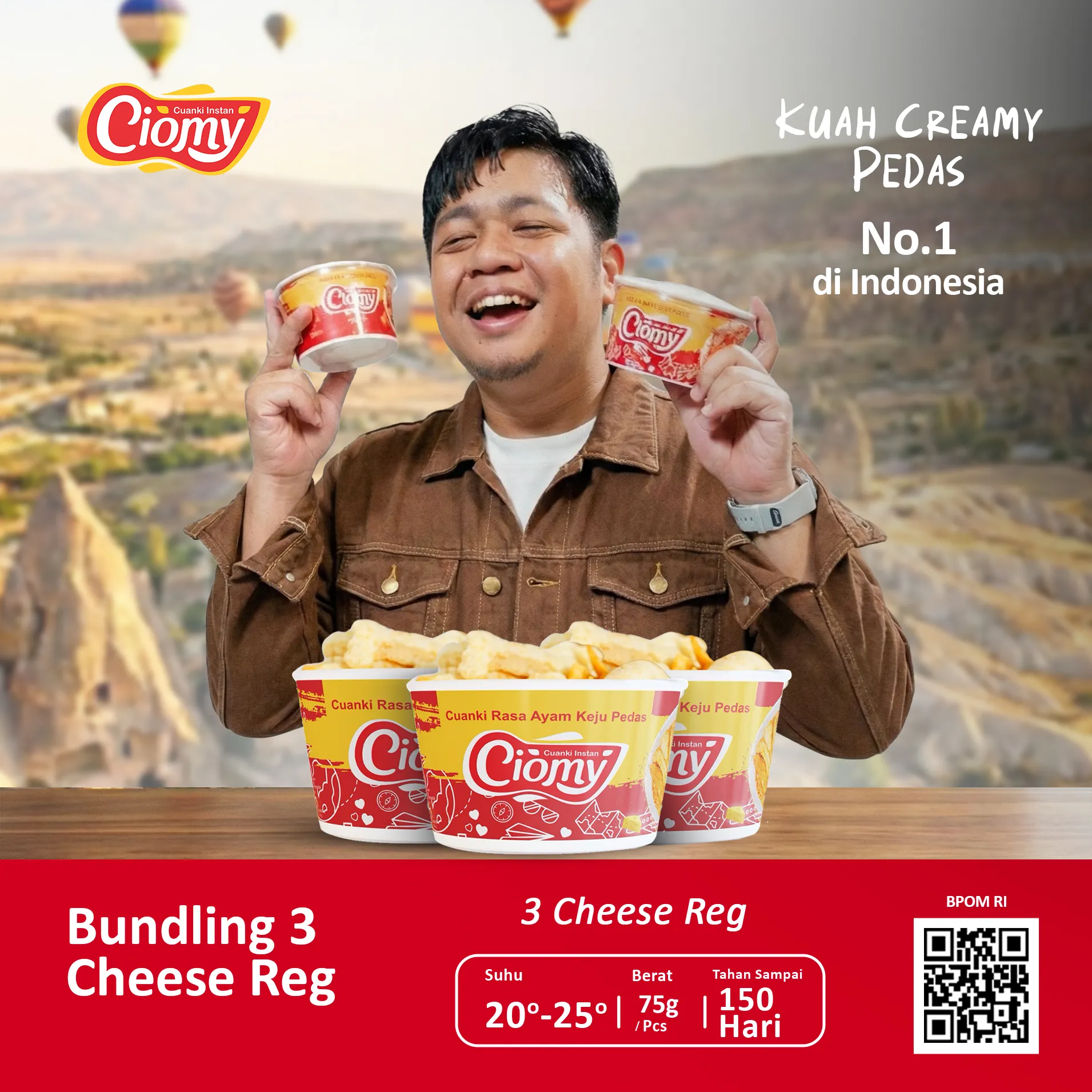 Ciomy Cuanki Cheese Spicy Bundling 3 Reguler menghadirkan perpaduan kuah pedas gurih dan keju creamy yang khas.