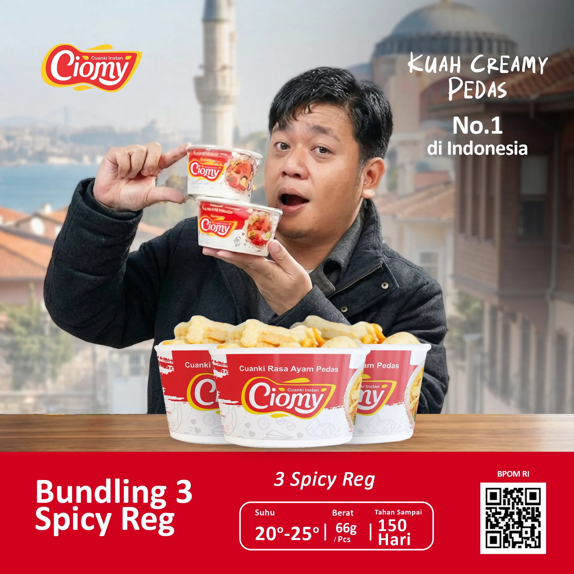 Bundling 3 Ciomy Chicken Spicy Reguler dengan kuah ayam pedas gurih khas Ciomy. Cocok dinikmati kapan saja dengan cita rasa yang nikmat dan konsisten.